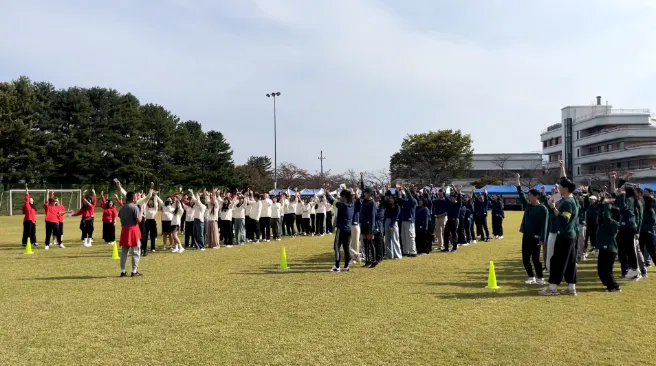 스포츠데이 행사 시작을 위해 임직원 모두가 운동장으로 삼삼오오 모였습니다.